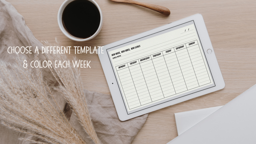 Discover your perfect weekly layout among our seven templates, each with distinct fonts and positive messages.